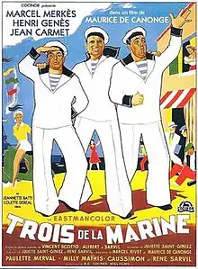 Three Sailors (French: Trois de la marine) is a 1957 French comedy film directed by Maurice de Canonge and starring Marcel Merkès, Henri Génès and Jeannette Batti.[1]