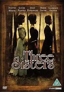 Three Sisters is a 1970 British drama film starring Alan Bates, Laurence Olivier and Joan Plowright, based on the 1901 play by Anton Chekhov. Olivier also directed, with co-director John Sichel; it was the final feature film directed by Olivier. The film was based on a 1967 theatre production that Olivier had directed at the Royal National Theatre. Both the theatrical production and the film used the translation from the original Russian by Moura Budberg.[1] The film was released in the U.S. in 1974 as part of the American Film Theatre. This was a series of thirteen film adaptations of stage plays shown to subscribers at about 500 movie theaters across the country.