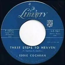 "Three Steps to Heaven" is a song co-written and recorded by Eddie Cochran, released in 1960. The record topped the charts in the Republic of Ireland and the United Kingdom posthumously for Cochran following his death in a car accident in April 1960.[1] In the US it did not reach the Billboard Hot 100.