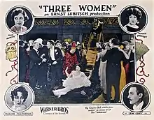 Three Women, also known as Die Frau, die Freundin und die Dirne, is a 1924 American silent drama film starring May McAvoy, Pauline Frederick, and Marie Prevost, directed by Ernst Lubitsch, and based on the novel Lillis Ehe by Yolande Maree (Iolanthe Mares).
