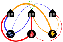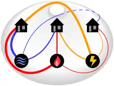 A review of the history of the three utilities problem is given by Kullman (1979). He states that most published references to the problem characterize it as "very ancient".[2] In the earliest publication found by Kullman, Henry Dudeney (1917) names it "water, gas, and electricity". However, Dudeney states that the problem is "as old as the hills...much older than electric lighting, or even gas".[3] Dudeney also published the same puzzle previously, in The Strand Magazine in 1913.[4] A competing claim of priority goes to Sam Loyd, who was quoted by his son in a posthumous biography as having published the problem in 1900.[5]