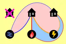 Another way of changing the rules of the puzzle that would make it solvable, suggested by Henry Dudeney, is to allow utility lines to pass through other houses or utilities than the ones they connect.[3]
