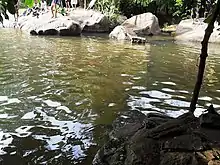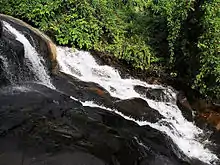 The fall, which has become a famous bathing place,[2] is situated in an estate once owned by a British and his wrecked country house can still be seen there. There is also a natural stream pool surrounded by “Ketala” plants and fern. In the nearby forest reserve, there are many migratory birds and local birds, e.g. “pale bellied flower pecker”, the smallest bird in the country.[3]