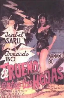 Thunder Among the Leaves (Spanish: El trueno entre las hojas) is a 1958 Argentine drama film directed by Armando Bó, starring himself, Isabel Sarli, Ernesto Báez and Andrés Laszlo. The screenplay by Paraguayan writer Augusto Roa Bastos was based on his short story La hija del ministro.[2][3] Set in Paraguay, the story is about a strike at a sawmill.[4]