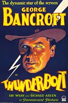 Thunderbolt (also released as At The Gates of Death) is a 1929 American Pre-Code proto-noir film directed by Josef von Sternberg and starring George Bancroft, Fay Wray, Richard Arlen, Tully Marshall and Eugenie Besserer. It tells the story of a criminal, facing execution, who wants to kill the man in the next cell for being in love with his former girlfriend.