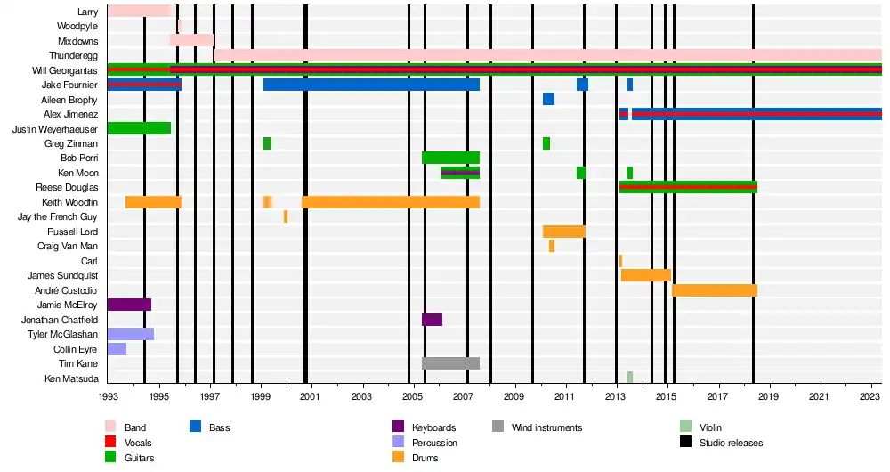 | Past members | Jake Fournier Keith Woodfin Bob Porri Tim Kane Jonathan Chatfield Nathan Gohla Ken Moon Greg "Action" Zinman Aileen Brophy Russell Lord Ken Matsuda James Sundquist |