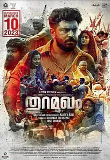Thuramukham (transl. Harbour) is a 2023 Indian Malayalam-language historical drama film directed by Rajeev Ravi (who also served as the film's cinematograher) and written by Gopan Chidambaran. It is based on the play of the same name by his father K. M. Chidambaran.[3][4][5] The film stars Nivin Pauly, Indrajith Sukumaran, Joju George, Arjun Ashokan, Sudev Nair, Manikandan R. Achari, Senthil Krishna, Nimisha Sajayan, Poornima Indrajith and Darshana Rajendran in prominent roles. In the film, the harbor workers protest against the Chappa labor allocation system practiced during the 1940s and 50s in Cochin district of Kerala.