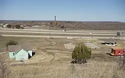 Nationwide, there are several thousands of people whose roots go back to Thurber. There are several landmarks in Thurber, such as The Thurber Cemetery (which has over a thousand graves), the restored St. Barbara's Catholic Church, a restored and furnished coal miner's house, New York Hill, and much more. A historic Thurber smokestack can be seen from Interstate 20 near Thurber.[6] Also at Thurber is the W. K. Gordon Center for Industrial History of Texas, a museum containing information on historical Thurber (operated by nearby Tarleton State University),[5] as well as the historic Smokestack Restaurant, and the New York Hill Restaurant built on what was once the site of the town's Episcopal Church at the top of New York Hill.