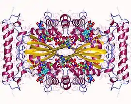 ![]() Flavin-dependent thymidylate synthase tetramer, Thermotoga maritima | |||||||||