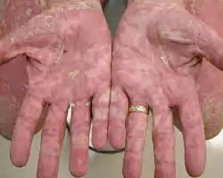 - Wadhera A, Maverakis E, Mitsiades N, Lara PN, Fung MA, Lynch PJ (Oct 2007). "Thymoma-associated multiorgan autoimmunity: a graft-versus-host-like disease". J Am Acad Dermatol. 57 (4): 683โ9. doi:10.1016/j.jaad.2007.02.027. PMID 17433850.