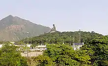 The Big Buddha is a large bronze statue of Buddha, completed in 1993, and located at Ngong Ping, Lantau Island, in Hong Kong. The statue is sited near Po Lin Monastery and symbolises the harmonious relationship between man and nature, people and faith. It is a major centre of Buddhism in Hong Kong, and is also a tourist attraction.[1]