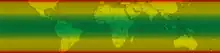 The map below shows the relative probabilities of debris landing within a given region. Yellow indicates locations that have a higher probability while green indicates areas of lower probability. Blue areas have zero probability of debris reentry since Tiangong-1 does not fly over these areas (north of 42.7° N latitude or south of 42.7° S latitude). These zero probability areas constitute about a third of the total Earth's surface area.