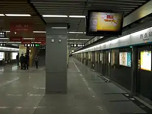 Tiangongyuan station[1] (simplified Chinese: 天宫院站; traditional Chinese: 天宮院站; pinyin: Tiāngōngyuàn Zhàn) is a station on and the southern terminus of the Daxing line (through operation to Line 4) of the Beijing Subway.[3] The station is located at the intersection of Xinyuan Street and Simiao Road.[2]