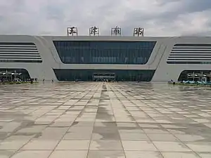 Tianjin South railway station (Chinese: 天津南站; pinyin: Tiānjīn Nán zhàn) is a high-speed railway station in Xiqing District, Tianjin, China. It is served by some trains on the Beijing–Shanghai high-speed railway.