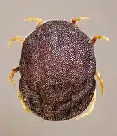 Argas persicus argasid ticks, female, dorsal and ventral.
