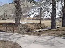 The town of Tucker was located near a sharp curve at the bottom of a 5% grade along U.S. Route 6. In 2009, the Utah Department of Transportation closed and buried the Tucker rest area to build a safer alignment, with a banked curve and reduced grade. In 2010, the department dedicated a replacement rest area about 2 miles (3.2 km) downstream from Tucker (mile post 202).[6] The structure was named the Tie Fork Rest Area after the side canyon where it was located.[7] The replacement rest area was designed to mimic an early 1900s era train depot to honor the town, including a replica roundhouse and non-functional steam locomotive built by Original Creations of Carbonville, Utah.[6][8][9] The buildings were designed by the Archiplex Group of Salt Lake City.[9] The rest area was voted one of the most beautiful buildings in the state of Utah in a contest sponsored by the American Institute of Architects.[10] It is also one of the busiest non-freeway rest areas in the state.[11]