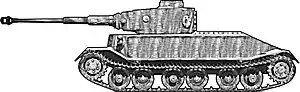 Henschel & Sohn began the development of a large tank design in January 1937 when the Waffenamt requested Henschel to develop a Durchbruchwagen ("breakthrough vehicle") in the 30–33 tonne range.[16] Only one prototype hull was ever built, and it was never fitted with a turret. The Durchbruchwagen I's general shape and suspension resembled the Panzer III, while the turret resembled the early Panzer IV C turret with the short-barrelled 7.5 cm L/24 cannon.