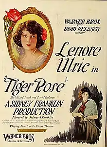 Tiger Rose is a 1923 American silent romantic adventure film produced and distributed by the Warner Brothers. It is based on Willard Mack's 1917 Broadway play starring Lenore Ulric. Ulric reprises her role in this silent film version. The story was later filmed as again in 1929 as Tiger Rose by George Fitzmaurice.[2][3][4] The SilentEra database lists this film as surviving.[5]
