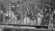 Tigers, London Zoological Gardens (French: Tigres, Jardin zoologique, Londres) is a 1896 French short black-and-white silent actuality film, produced by Auguste and Louis Lumière and directed by Alexandre Promio, featuring two tigers reaching through the bars of its enclosure at London Zoological Gardens to get at the meat offered on a stick by their keeper. The film was part of a series, including Lion and Pelicans, which were one of the earliest examples of animal life on film.[1]