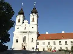 The Tihany Abbey is a Benedictine monastery established in Tihany in the Kingdom of Hungary in 1055. Its patrons are the Virgin Mary and Saint Aignan of Orleans.