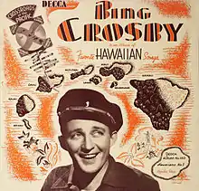 Hapa-haole is the more proper name for what most 20th century Americans would think of as sung Hawaiian music, where the tune, styling, and subject matter have very distinct Hawaiian elements, but the lyrics are mostly in English.[75] It became sung by both Hawaiians and contemporary performers, such as the Bing Crosby vehicles Sweet Leilani and Blue Hawaii in 1937.[76] Alfred Apaka was arguably the foremost interpreter of hapa haole music, melding Hawaiian music with traditional American pop arrangements and English lyrics. Apaka began touring in the late 1930s, and settled more into routine shows at performance rooms created just for him in Hawaii in the 1950s.[77] He would also sing at large luaus being put on by Donn Beach.[78]
