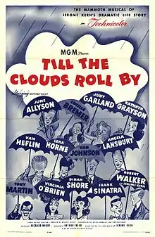 Till The Clouds Roll By is a 1946 American Technicolor musical film produced by Metro-Goldwyn-Mayer. A fictionalized biopic of composer Jerome Kern, portrayed by Robert Walker, Kern was originally involved with the production, but died before its completion. Featuring an ensemble cast of well-known musical stars, it was the first in a series of MGM biopics about Broadway composers.[1]