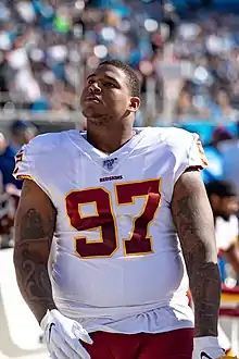 Settle was drafted by the Washington Redskins in the fifth round, 163rd overall, of the 2018 NFL Draft.[14] He made his NFL debut in the Redskins' season-opening 24–6 victory over the Arizona Cardinals.[15] In Week 12, against the Dallas Cowboys, he recorded the first three tackles of his professional career.[16] Settle made his first NFL start in a Week 2 loss to the Dallas Cowboys in 2019.[17] In Week 5 Settle sacked Tom Brady to record his first career NFL sack. Settle finished the 2020 season with a new career high of five sacks, which ranked him fourth on the team.[18]