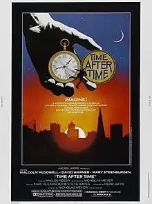 Time After Time is a 1979 American science fiction film written and directed by Nicholas Meyer and starring Malcolm McDowell, David Warner, and Mary Steenburgen. Filmed in Panavision, it was the directing debut of Meyer, whose screenplay is based on the premise from Karl Alexander's novel Time After Time (which was unfinished at the time) and a story by Alexander and Steve Hayes. The film presents a story in which British author H. G. Wells uses his time machine to pursue Jack the Ripper into the 20th century.