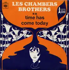 "Time Has Come Today" is a hit single by the American psychedelic soul group the Chambers Brothers, written by Willie & Joe Chambers. The song was recorded and released as a single in 1966 by Columbia Records.[1] It was then featured on the album The Time Has Come in November 1967, and released again as a single in December 1967. The 1967 single was a Top 10 near-miss in America, spending five weeks at No. 11 on the Billboard Hot 100 in the fall of 1968.[2] In Canada, the song reached No. 9.[3] It is now considered one of the landmark rock songs of the psychedelic era.[4]