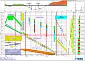 The drawing area may contain grid lines to ease comprehension of the chart: hours, days, weeks, months, years, for the time axis; equidistant units along the distance axis or specific locations (piles, stations, foundations, etc.). The background of the drawing area may be enhanced with time and location related information such as close seasons, hold-off intervals, meteorological data (rain/snow fall, temperatures).