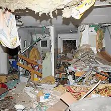 Overnight in the Northern Gaza Strip, 57 airstrikes, together with tank and gunboat fire, struck and shelled a variety of sites, destroying 10 houses and institutional offices, including a disability rehabilitation center. 77 people were wounded including 28 children and 21 women. In Gaza City, 43 airstrikes, combined with ground and sea shelling destroyed 11 houses, and hit security sites, and open land, with 11 killed and 30 wounded. In the Central Gaza Strip, 35 airstrikes demolished 9 houses, militant sites, open areas, and some charities and mosques. There were 6 fatalities and 41 wounded. In Khan Yunis, 39 airstrikes hit housing, demolishing 12 houses, open areas, a charity, and a bank. There were 9 fatalities. In Rafah 34 airstrikes targeted houses, destroying 8, and government offices and tunnels, and ground and sea artillery was all offices. There were 28 fatalities.[152] An IDF strike targeting Gaza police chief Tayseer Al-Batsah's home killed 21 people and wounded 45.[153] The police chief's Gaza City house was nearly destroyed by two rockets.[154][155] Many of those killed were leaving a mosque, next door to the home, at the time of the strike.[156]