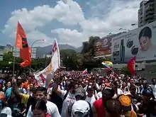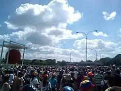 - 23 April – The Democratic Unity Roundtable announces the plans for the 24 April protest titled "The National Sit-in", with gathering points designated in La Villa, Crema Paraíso de Santa Monica, Plaza Brión de Chacaíto, Caurimare, Santa Fe, Altamira, Unicentro el Marqués and Altamira.[78] Organizers stated that it "is a protest of resistance, not of ruckus", calling for a national standstill and asked marchers be prepared with food, water, comfortable clothes and cell phone batteries.[79]