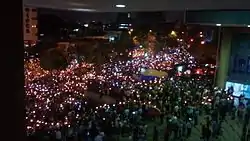 - 17 May - Venezuelans throughout the country gather in the evening at designated areas to mourn those who had been killed during the protests. Demonstrators in Caracas gathered at Parque Cristal while in Altamira, they gathered at Plaza Francia, with both meetings involving candlelight vigils during the night. In other states such as Lara and Carabobo, citizens participated in peaceful marches, reciting prayers in candlelight.[120]