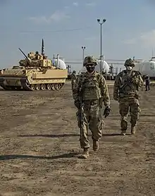 U.S. aircraft include B-1 bombers, F-16s, F-18s and Predator drones, with F-18s flying missions off the USS George H.W. Bush (CVN-77) in the Persian Gulf. Tomahawk missiles were fired from the destroyer USS Arleigh Burke (DDG-51) in the Red Sea. Syria's Foreign Ministry told the Associated Press that the U.S. informed Syria's envoy to the U.N. that "strikes will be launched against the terrorist group in Raqqa".[288] The United States informed the Free Syrian Army beforehand of the impending airstrikes, and the rebels said that weapons transfers to the Free Syrian Army had begun.[289]