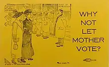 - Women's suffrage groups lobbied for women to be exempt from taxation since they did not vote, but the legislature did not act on the idea.[20]