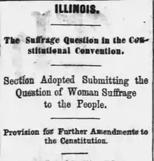 - January: The Illinois Constitutional Convention discusses adding women's suffrage to the state constitution.[10]