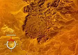 ![]() Landsat image of the Tin Bider crater; screen capture from NASA World Wind | |