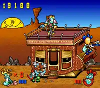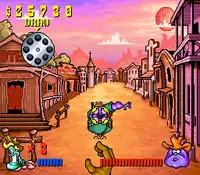 Cash is gained by shooting enemies, and lost by wasting bullets and damaging the town.[18] Cash is used to save progress,[19] and the balance determines the ending of the story.[11] There are objects to hit, such as canteens that regain Tin Star's hit points.[19] However, if the canteen is hit in a stage, the bonus stage afterward is disabled. In the bonus stage, cash is obtained by shooting stars that surround a woman on a spinning disk.[12]