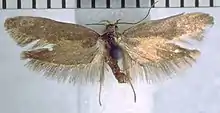 This species was described by Alfred Philpott in 1926 using specimens collected in Nelson in December and at Dun Mountain in January.[3] Philpott originally named the species Borkhausenia affinis.[3] Philpott illustrated the male genitalia of this species but this illustration is virtually identical to his illustration of the male genitalia of the species now known as Tingena xanthomicta.[3][2] George Hudson discussed and illustrated this species under the name B. affinis in his 1928 publication The butterflies and moths of New Zealand.[4] In 1988 J. S. Dugdale placed this species within the genus Tingena.[2] The male holotype specimen, collected in Nelson, is held at the New Zealand Arthropod Collection.[2]