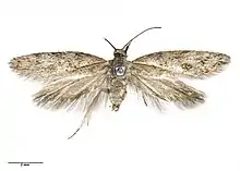 This species was first described by Alfred Philpott using specimens collected by Charles Edwin Clarke at Flat Mountain near Lake Manapouri at an altitude of about 4,000 ft in December.[3] Philpott named Borkhausenia levicula.[3] In 1939 George Hudson discussed and illustrated this species under the name B. levicula.[4] In 1988 J. S. Dugdale placed this species in the genus Tingena.[2] The male holotype specimen, collected at Flat Top Mountain, is held at the Auckland War Memorial Museum.[2][5]