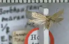 - E. Meyrick (12 July 1915). "Revision of New Zealand Tineina". Transactions and Proceedings of the New Zealand Institute. 47: 213. ISSN 1176-6158. Wikidata Q63123349.