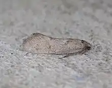 Philpott pointed out that it is difficult to confirm the identity of this species visually as a result of its lack of markings.[2] However the genitalia of this species is characteristic and gives more reliable evidence of the species identity.[2] Hudson stated that this species was very similar to and might be confused with Tingena innotella.[4] However T. marcida could be distinguished from T. innotella by the terminal appendages of the male of the species.[3] As a result of its greyish colour T. marcida could also be confused with Izatha psychra however T. marcida has antennal pecten which is lacking in the Izatha species.[5]