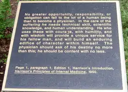 Harrison died in Birmingham at the age of 78 on August 4, 1978. In 2014, NewSouth Books released Tinsley Harrison, M.D.: Teacher of Medicine, a biography of Harrison that included interviews with Harrison, his family, and fellow doctors, written by his colleague and mentee James A. Pittman.[1] The Montgomery Advertiser called the book "a superb examination of an extraordinary doctor's life, seen through the lens of a turbulent century of medical and social change"[2] and the Anniston Star calls it a "finely crafted biography."[3]