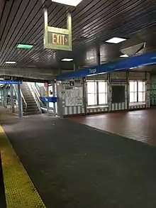Between 1988 and 2003, SEPTA undertook a $493.3 million reconstruction of the 5.5-mile (8.9 km) Frankford Elevated.[5] Most of Tioga station was completely rebuilt on the site of the original station, though the eastbound platform exit uses an component of the original station. The reconstruction project included new platforms, elevators, windscreens, and overpasses, and the station now meets ADA accessibility requirements.[5] The line had originally been built with track ballast and was replaced with precast sections of deck, allowing the station (and the entire line) to remain open throughout the project.[6]