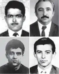 | Some of MRT's prominent militants, killed and disappeared during the military dictatorship. From left to right, clockwise: Devanir José de Carvalho, Joaquim Alencar de Seixas, Dimas Antônio Casemiro, Aderval Alves Coqueiro. | |