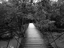Tishomingo State Park is a public recreation area located in the foothills of the Appalachian Mountains in Tishomingo County, some 45 miles (72 km) northeast of Tupelo, Mississippi. The major feature of the park is Bear Creek Canyon and its generous sandstone outcroppings. Activities in the park include canoeing, rock climbing, fishing, and hiking.[3] The park sits at Milepost 304 of Natchez Trace Parkway, a scenic road operated by the National Park Service commemorating the historical Natchez Trace.[4]
