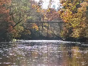 The park was among those constructed in Mississippi by the Civilian Conservation Corps in the 1930s. CCC Company 3497 began work creating the park in April 1935; the park opened to the public in May 1939.[11] Many of the original facilities are extant, including several buildings, trails, picnic tables, campgrounds, cabins and a fishing pond used by the CCC workers themselves. The rustic quality of the CCC structures resulted from the use of native materials, their original designs, and the craftsmanship of the builders. While most of the facilities in Mississippi were built of wood, Tishomingo and Wall Doxey state parks feature substantial use of stone construction.[12]