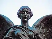 The monument was originally erected with funding from worldwide donations.[6][7] It was designed and built by Whitehead and Son of the Imperial Works, Kennington Oval in London.[8] Ferdinand Victor Blundstone was the sculptor.[9] It is officially a Grade II listed building.[8] It features a bronze statue of Nike, the Greek Winged Goddess of Victory, created by Trieste-born sculptor Romeo Rathmann, and carvings which represent the engineer officers of the ship, who died in the disaster.[10][11][12]
