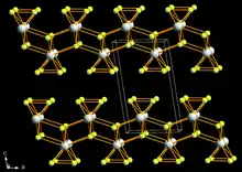 Titanium trisulfide (TiS3) is an inorganic chemical compound of titanium and sulfur. Its formula unit contains one Ti4+ cation, one S2− anion and one S22−.