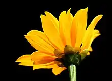 Tithonia diversifolia is a species of flowering plant in the family Asteraceae that is commonly known as the tree marigold,[2] Mexican tournesol, Mexican sunflower, Japanese sunflower or Nitobe chrysanthemum. It is native to Mexico and Central America but has a nearly pantropical distribution as an introduced species.[1] Depending on the area they may be either annual or perennial. It has shown great potential in raising the soil fertility in soils depleted in nutrients.[3] Originating in Mexico; research has shown its potential in benefiting poor African farmers.[4] This plant is a weed that grows quickly and has become an option as an affordable alternative to expensive synthetic fertilizers.[5] It has shown to increase plant yields and the soil nutrients of nitrogen (N), phosphorus (P), and potassium (K).[5]